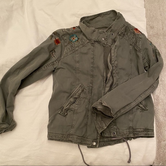 Floral army green jacket from American eagle. In perfect condition no damage or stains. Size xs