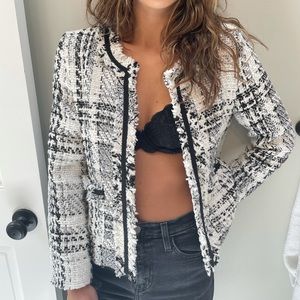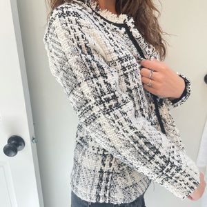 Black and white jacket with silver detail in the design. Doesn’t have a brand tag. Purchased when I was in Japan from a random boutique