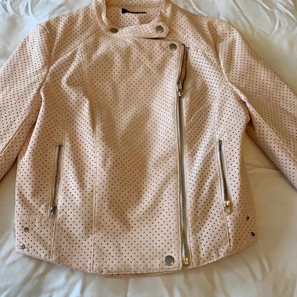 Faux leather jacket. Color is blush.