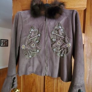 Alberto Makali Fur Trim Embellished Jacket Large Gorgeous & Unique! Runs small for a large so please look at measurements. Underarm to underarm is appx 18.5” shoulder seam to sleeve end is appx 24” and shoulder to bottom is appx 22.5”. Accents on this jacket are absolutely gorgeous and fur trim is Fox.