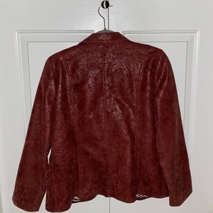 Jacket in the color red with flowers, hint of brown and white zebra detailing along the inside. I hope one of you buy and enjoy this listing!
