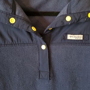 Navy blue Columbia PFG 1/4 button down jacket with bright yellow detailing