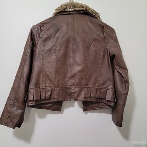 Looks new. Worn a few times. Not real leather. Keeps warm. Fits small.
