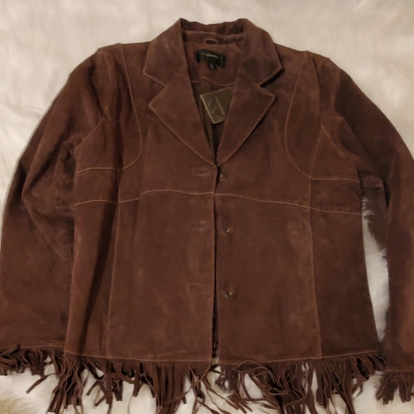 Chocolate brown Colebrook suede fringe jacket. Tags included. Size large. Fall will be here before you know it! Get ready! ☺