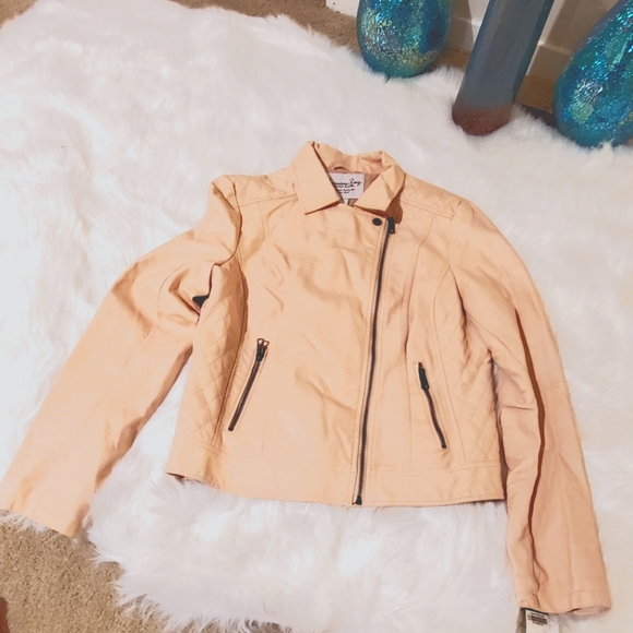 Pale peach American Rag faux leather jacket. NWT..soft..comfortable.
