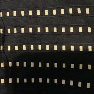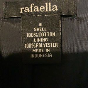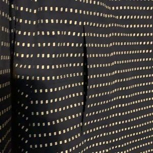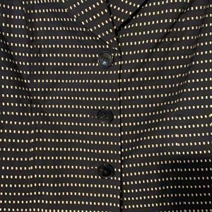 This is a navy with an white decorative embellishment. It has pockets and three button up front. There are no stains or tears. Perfect to wear to work.