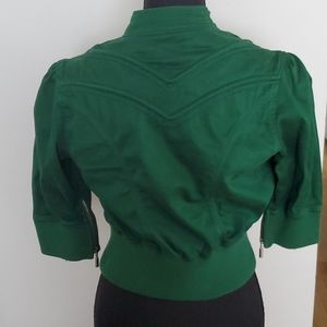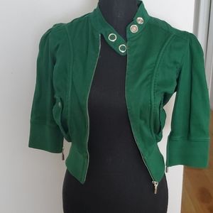 Emerald green XOXO jacket. Pockets on sides. 3/4 sleeves.