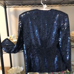 Royal blue sequined, 4 front buttons with loop closures. Jones New York, Petite size 6. Never worn bought in Denver Colorado. Fully silk lined. Dazzling jacket