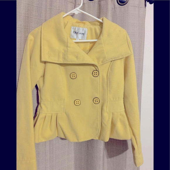 Cute, yellow, casual jacket.. 25%wool..55%polyester…20%nylon.. only worn a few times