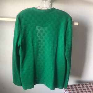 Lovely Misook jacket with 2 pockets, slightly used, in good condition, no tears,stains, odor. 90% acrylic, 10% polyester.