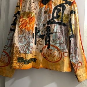 Exclusive of decoration. Made in India. Beautifully embroidered jacket, with scattered sequins, some are miss on the bottom left side, but not all that obvious. Clean and in good condition. Got lots of compliments when I wore it. Make offer.