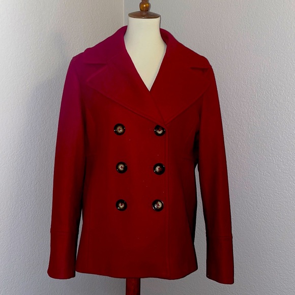 Women’s red Michael Kors winter coat.