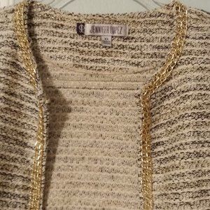 3/4 sleeved tweed looking jacket by Jennifer Lopez brand. Gold link outline along the edges.