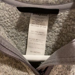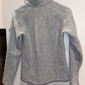 1/4 zip grey jacket, shoes wear and some pilling. But overall still has life to it. Super cozy. Does run small.