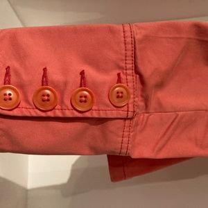 Coral jacket with three buttons down the front and buttons on the sleeve. Eddie Bauer brand, size 10 petite