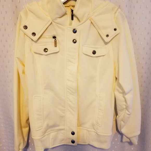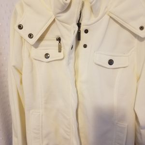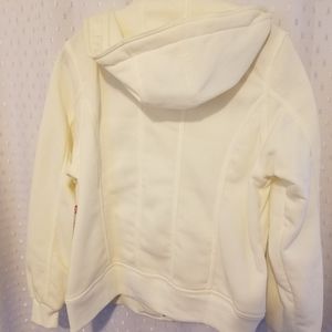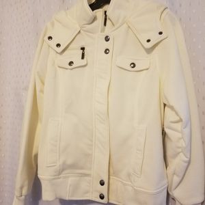 Cream jacket with hoody.