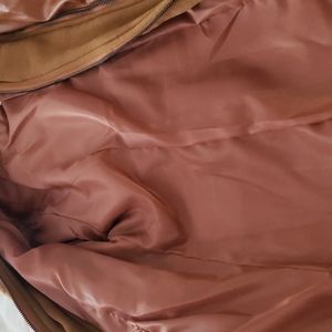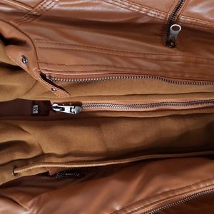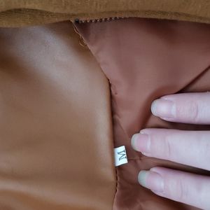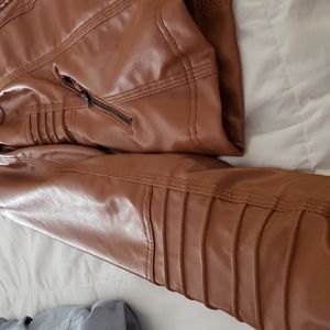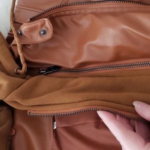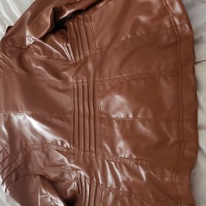 Pleather material with detachable hood and front inseet..see photos. Never worn