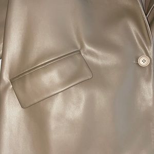 This jacket is a size Medium, but it is an oversize jacket!! Leather beige, super comfortable. Brand new, never worn. Sleeve inside is different material. Very stylish.