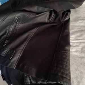 Leather like jacket, black, size large. Never worn, has flex panels on sides & sleeves