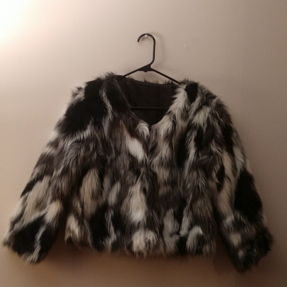 Black and white fur jacket mid cut. In excellent condition.