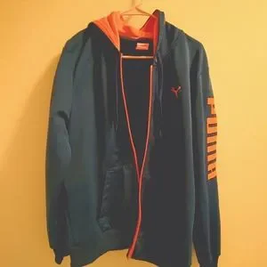 men's puma zip up hoodie royal blue and orange