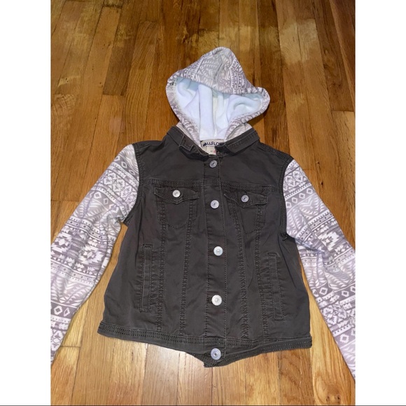 fleece like material in hood and sleeves are sweatshirt stretchy material