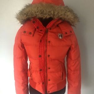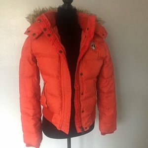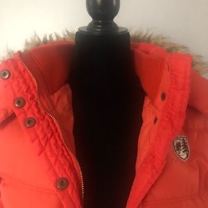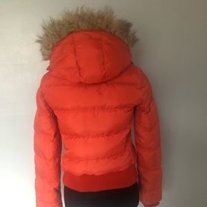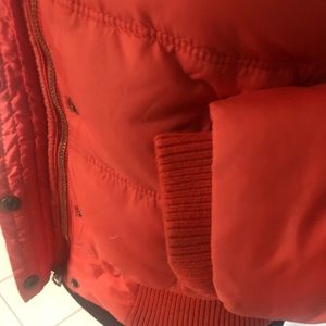 American Eagle outfitter, jacket, with hoodie, size medium, size teenager , with zipper in bottoms in front, that hoodie take off in on , pockets in front with zipper the closure of the hoodie zipper does not work)