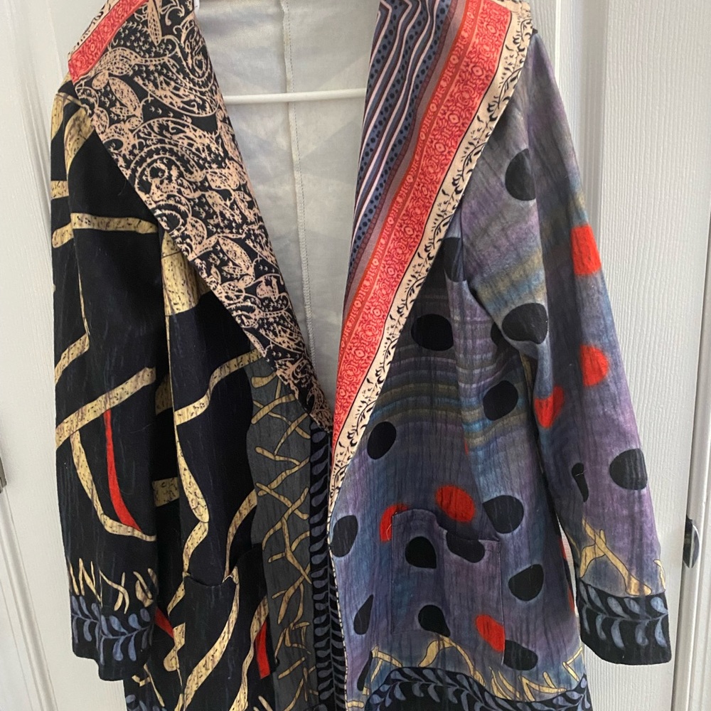 very fun! any fabric content label? and could you please provide bust & length measurements? thank you in advance for your help-L