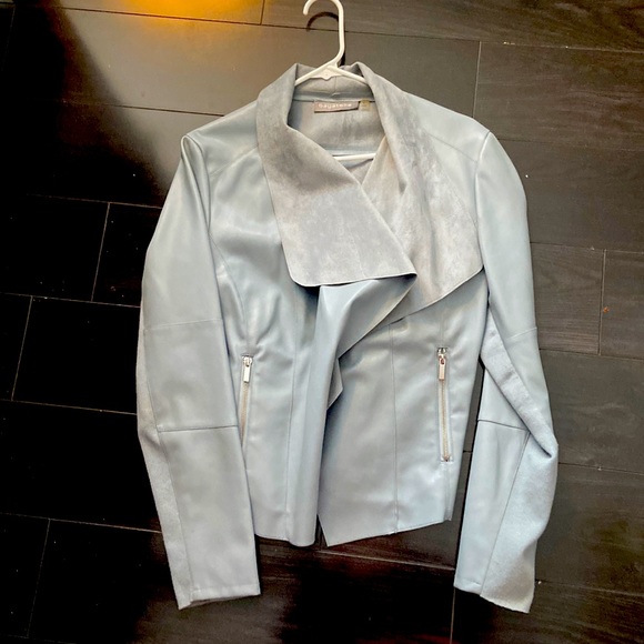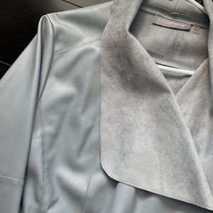 Light blue leather looking jacket. Adorable in spring with a floral top under or even a t-shirt. Lots of compliments when I wore it.