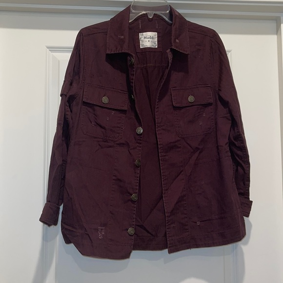 Very beautiful distressed maroon colored “jean” jacket! In perfect condition only worn once!