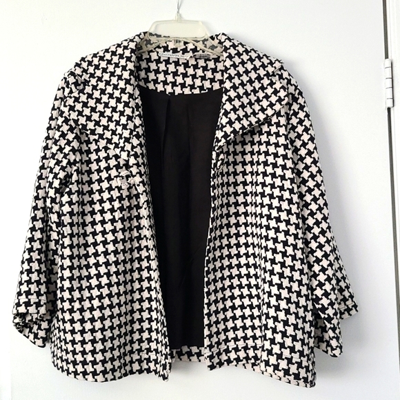 Women's houndstooth 3/4 length swing jacket