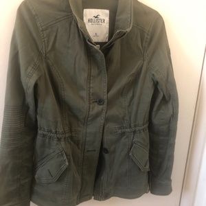 Zip up and button jacket with cuffed button sleeves. Hardly worn, very good condition.