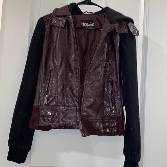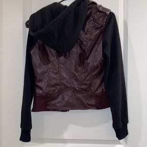 Leather jacket with cotton sleeves like hoodie