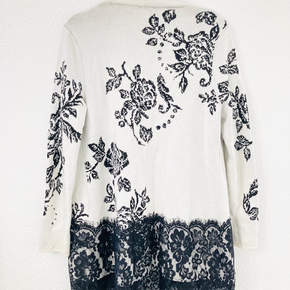Warm jacket with lace and pattern black and white