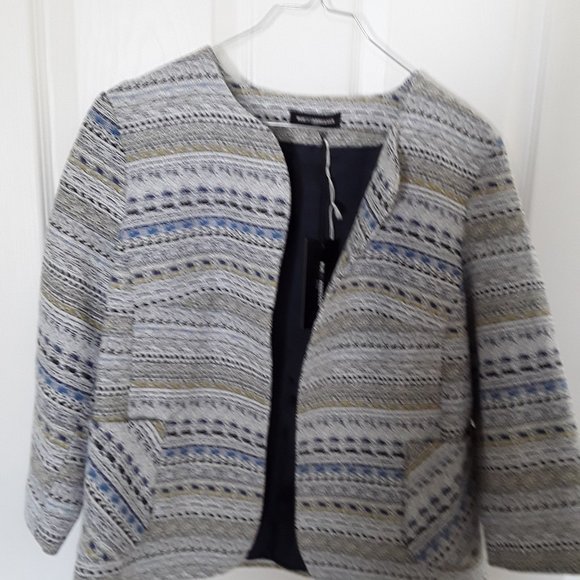 Jacket multi colors mainly blue, grey & yellow. From France. Designer "Rue des Abbesses".