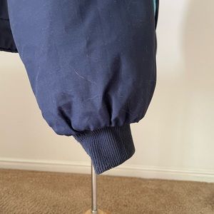 Ski jacket, multicolored with ribbing at hip and cuff. Two side pockets and a inside pocket to hold wallet, etc.