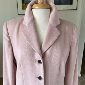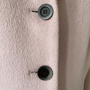 Dusty Rose Angora wool jacket with button closing. 30” in length. The fabric has a heavenly texture.