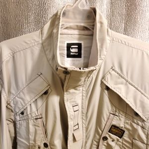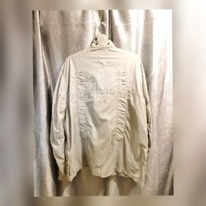 Men's jacket with multiple detailing including four front pockets and each sleeve has a zipper. The measurements are armpit to end of sleeve 19", armpit to end of waist 18 1/2" , bust and waist 48 " all around. This item is used but in great condition.