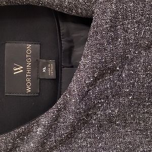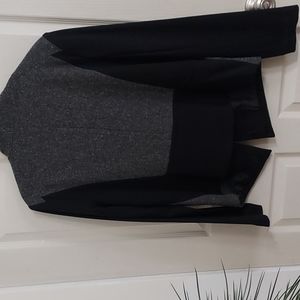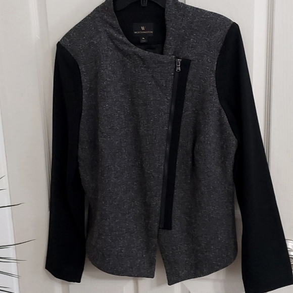 This is a versatile jacket, little stretch in arms. looks gorgeous with dress slacks. can be worn zipped or open zipper down to your preferred opening