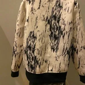Black white & gray knit Jacket gently used arm length 25 jacket length 25 pit to pit measures