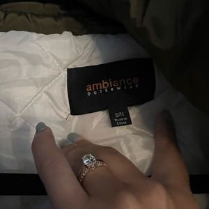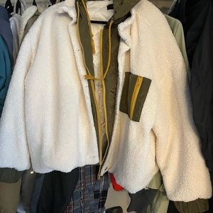 White jacket with green accents. Oversized size s/m