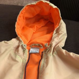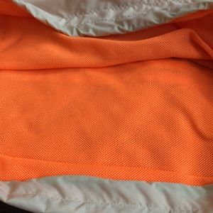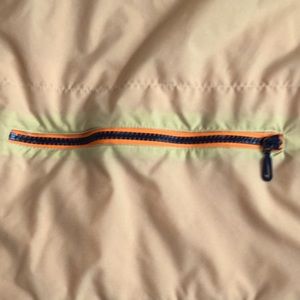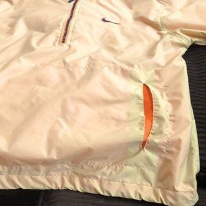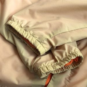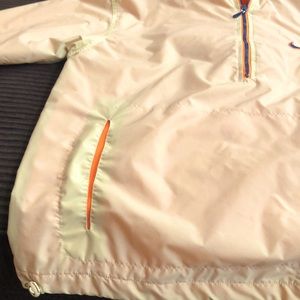Super cute pull over Nike jacket. Light orange outside and brighter orange on inside. It can be pulled right around waist. Great for those cool nights. Great condition