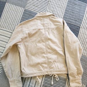 Light weight womens jacket. 100% cotton. Color is solid cream/off white. Great working zipper, small pockets, very good condition!
