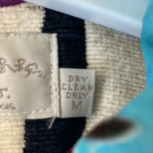 Zebra stripes with multi colored velvet collar and pockets.