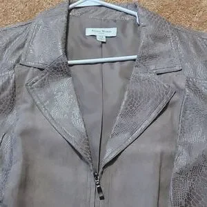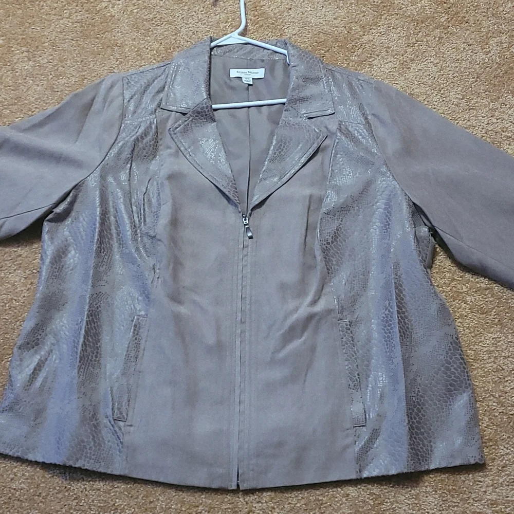 faux leather trim tan jacket size20w soft suede feel inside lining tan