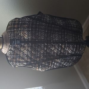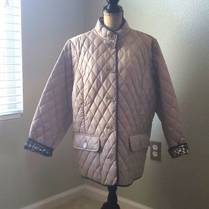 Quilted, cute leopard print lining, black line edging detail, buttons up the front, two functional pockets, sleeves can rolled up or not. NWOT.