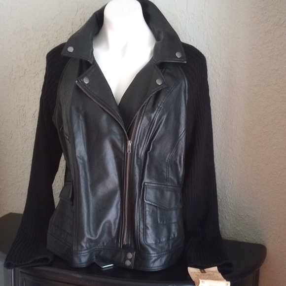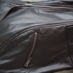 Black leather jacket, front sipper and packets,