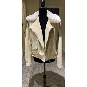 Casual suede Jacket great for fall in size medium color Beige /cream