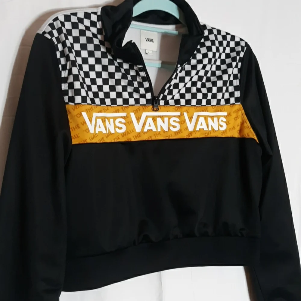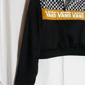 Van crop jacket. gold black and white checks. whatever and black on back side.