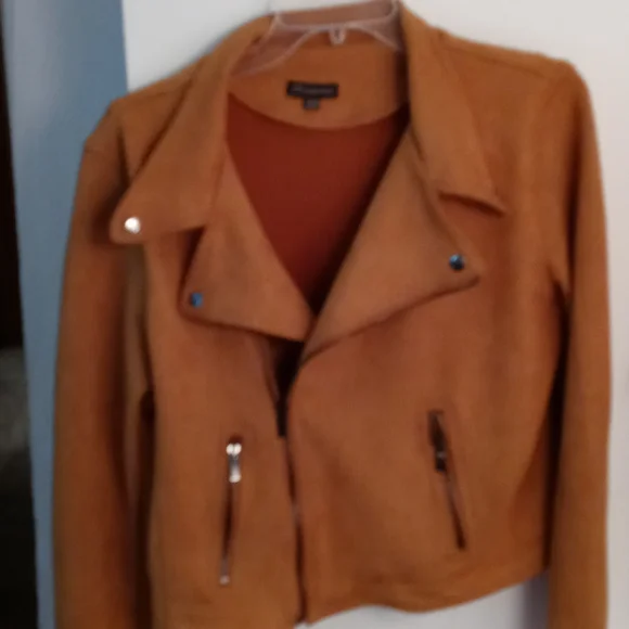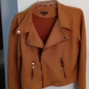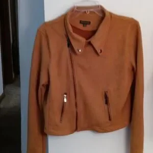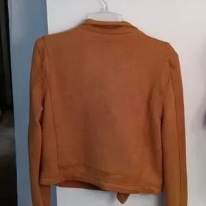 Caramel colored faux suede long sleeved lined jacket.